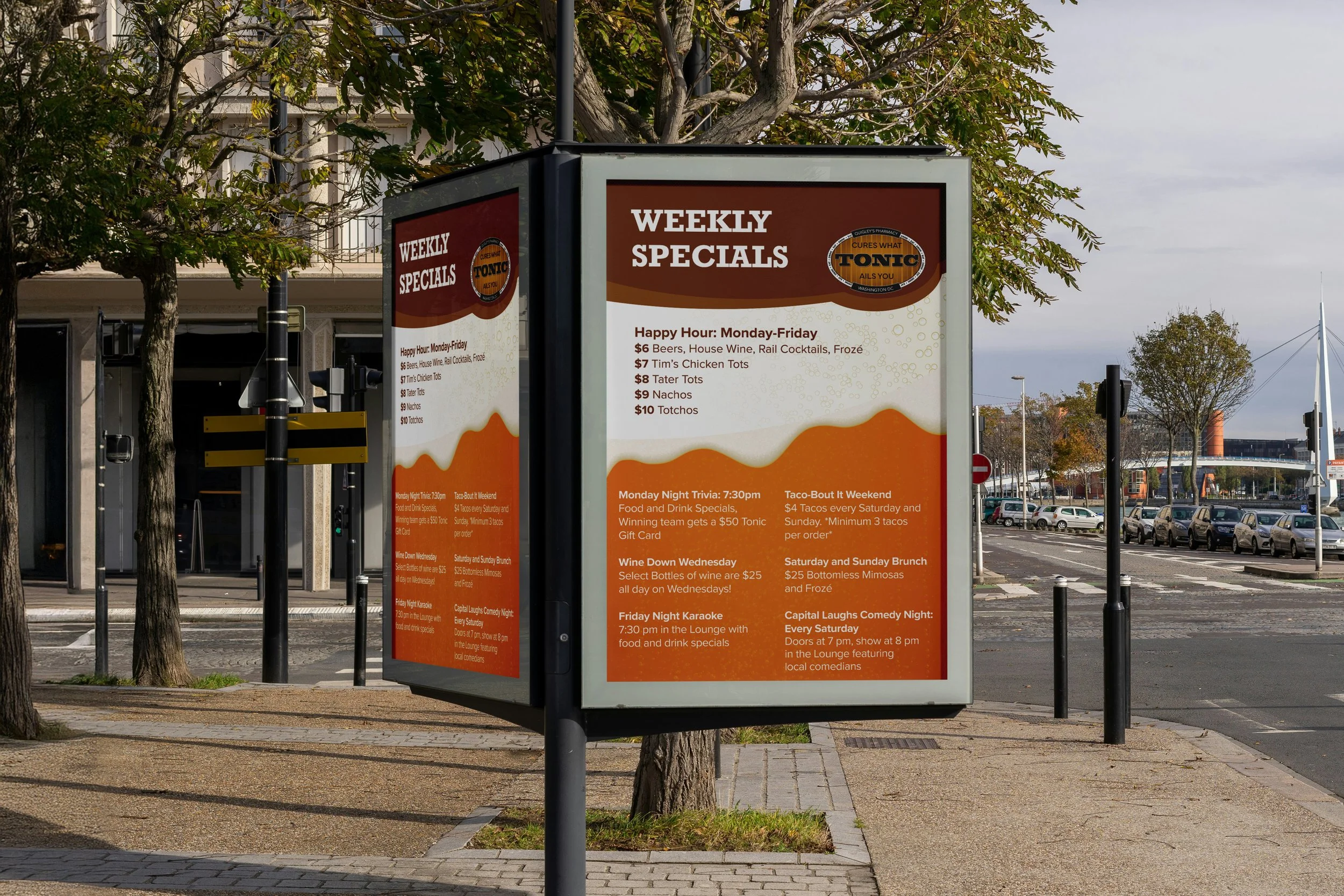 Located in the heart of the Foggy Bottom neighborhood, Tonic is a restaurant serving delicious American comfort food. Always looking to market their innovative menu, I was brought in to design several digital ads. This included general promotional ads for the menu items as well as Special events they would host at the restaurant. They have a fluid and fun brand making each campaign stand out as its own unique experience.